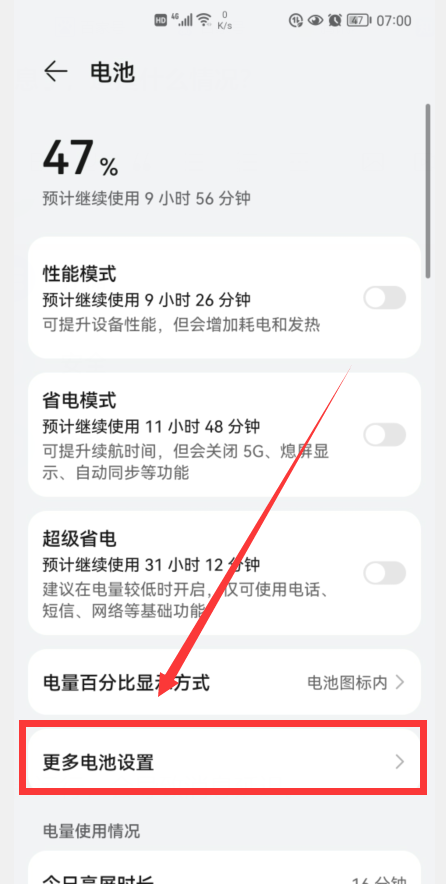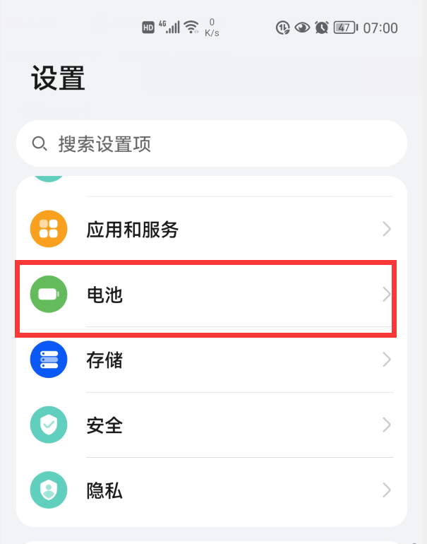 点击“电池”,进入电池设置界面。